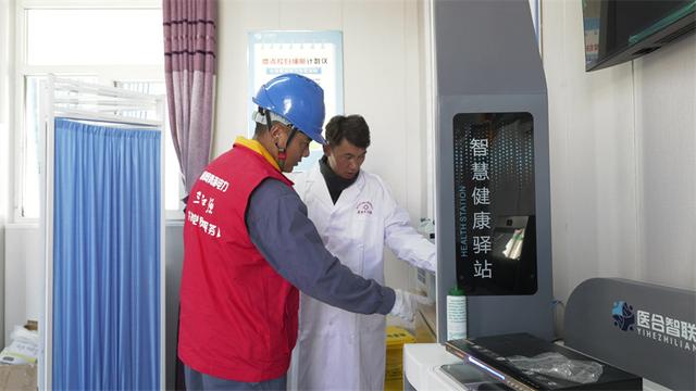 通電后,蘇里鄉(xiāng)衛(wèi)生院工作人員操作檢測(cè)設(shè)備,供電服務(wù)人員在一旁進(jìn)行安全監(jiān)督。許小萍攝