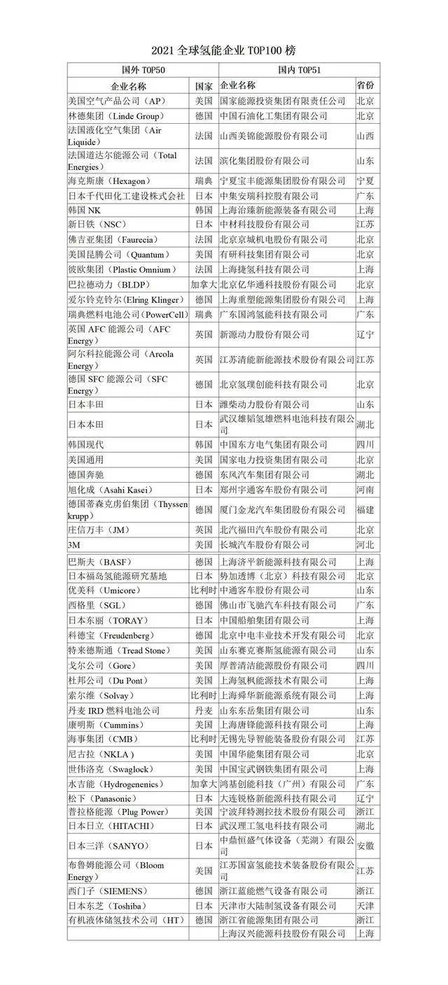 12月9日,首屆氫能國(guó)際(中國(guó)·南海)主題峰會(huì)暨2021全球氫能企業(yè)TOP 100榜發(fā)布會(huì)在佛山市南海區(qū)舉辦。該榜單由地方政府、企業(yè)、科研機(jī)構(gòu)等多方聯(lián)合發(fā)布,集納全球101家氫能企業(yè),將助力匯聚“政產(chǎn)學(xué)研用資”力量,推動(dòng)氫能產(chǎn)業(yè)上下游跨區(qū)域聯(lián)動(dòng)。國(guó)家能源集團(tuán)、中國(guó)石化、美錦能源等51家企業(yè)上榜!