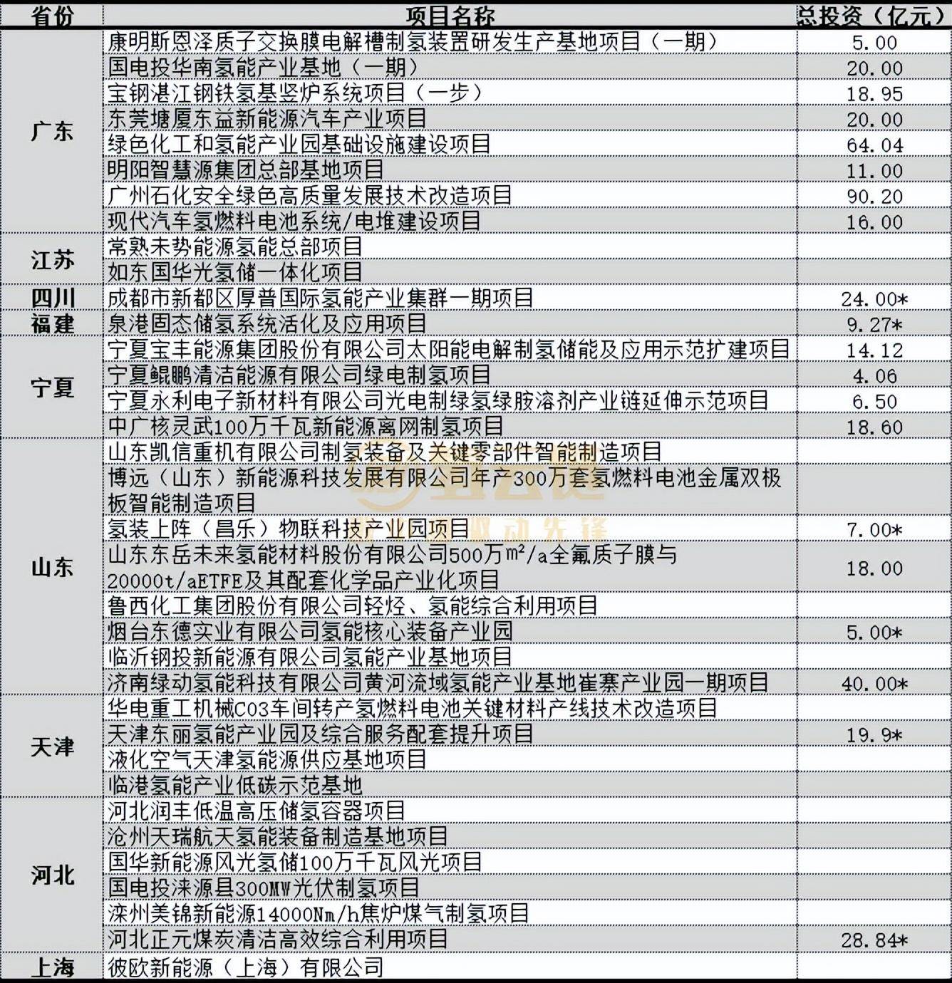 來源:氫云鏈注:帶星號的投資額表示政府未公布但前期項目在媒體公布的投資額