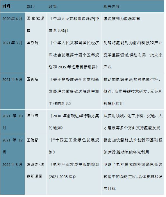 圖表:2020-2022年國家層面氫能產(chǎn)業(yè)相關(guān)政策
