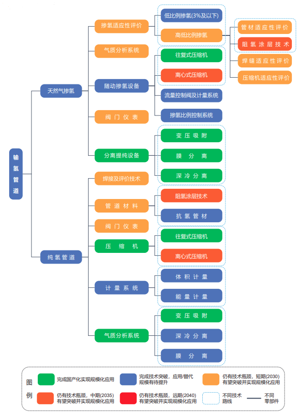 管道輸氫是實(shí)現(xiàn)氫氣大規(guī)模、網(wǎng)絡(luò)化運(yùn)輸最具潛力的技術(shù)之一,高壓力、大口徑、長(zhǎng)距離的輸送技術(shù)是未來(lái)發(fā)展方向。