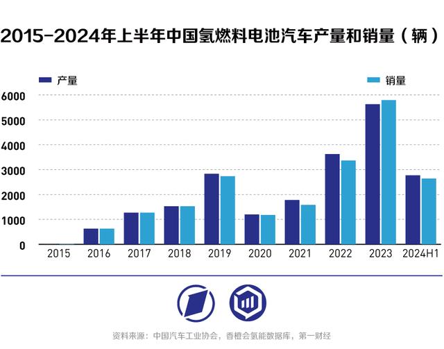 相比之下,中國市場(chǎng)逆勢(shì)增長,繼續(xù)保持全球燃料電池車產(chǎn)銷第一的地位。根據(jù)中國汽車工業(yè)協(xié)會(huì)數(shù)據(jù),2024年上半年全國氫燃料電池汽車產(chǎn)銷數(shù)據(jù)分別為2773輛和2644輛,同比增加11.1%和9.7%,均位列世界第一。