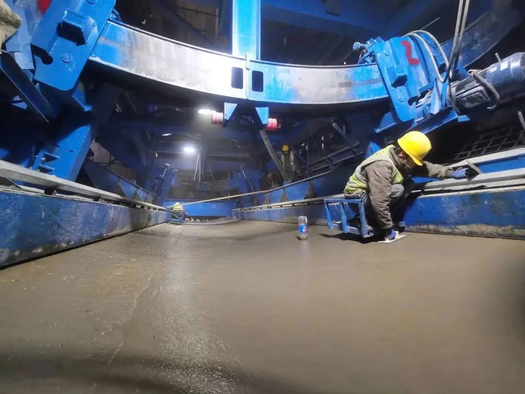 有壓段全斷面首倉混凝土澆筑成功拉哇水電站泄洪洞有壓段隧洞段洞長456.60米,洞室埋設(shè)85米,屬世界級埋深的泄洪洞。施工過程中,面臨著保證混凝土密實度、表面平整度、光滑度、減少氣泡和裂縫等施工重難點,為滿足提前半年發(fā)電目標要求,項目部全力加快施工進度,并做好已澆筑底板的表面保護工作。相比較于泄洪洞無壓段首倉,有壓段全斷面首倉混凝土澆筑首次采用全圓針梁底拱橫向滑模襯砌鋼模臺車,以此達到支模、收模良好效果。