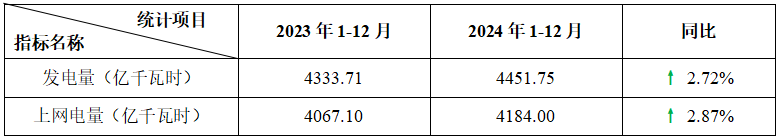 表2:2024年1-12月運行核電機(jī)組電力生產(chǎn)指標(biāo)統(tǒng)計表