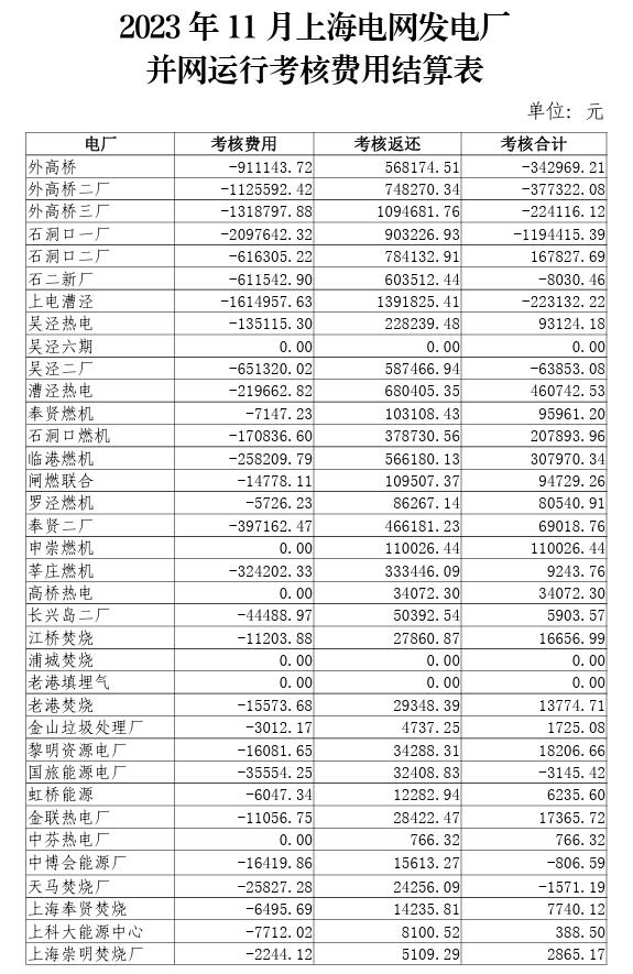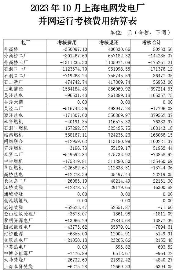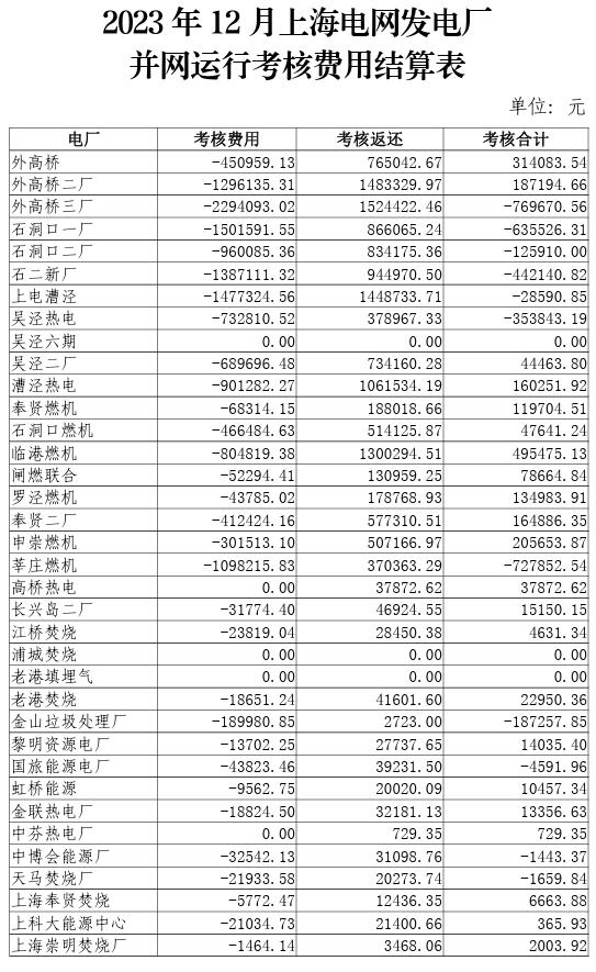 2023年10-12月上海電網(wǎng)發(fā)電廠并網(wǎng)運(yùn)行考核費(fèi)用結(jié)算表