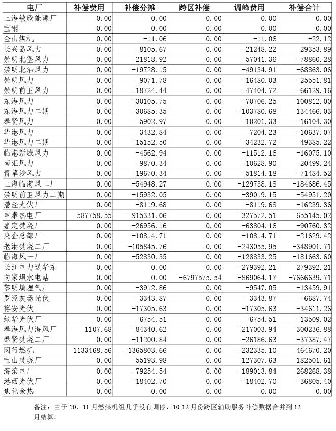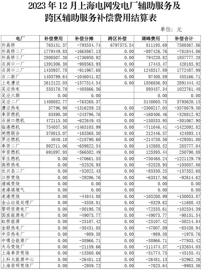 附件:2023年10-12月上海電網(wǎng)發(fā)電廠輔助服務(wù)及跨區(qū)輔助服務(wù)補償費用結(jié)算表