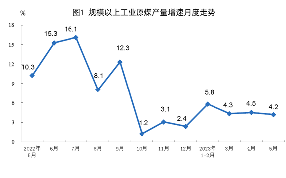 5月份,規(guī)模以上工業(yè)主要能源產(chǎn)品生產(chǎn)均保持同比增長。與4月份比,原煤、電力生產(chǎn)略有放緩,原油、天然氣生產(chǎn)有所加快。