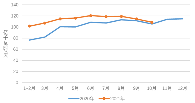 2021年1-10月電力消費情況