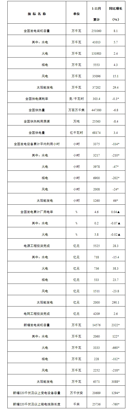 12月16日,國家能源局發(fā)布1-11月份全國電力工業(yè)統(tǒng)計數(shù)據(jù)。