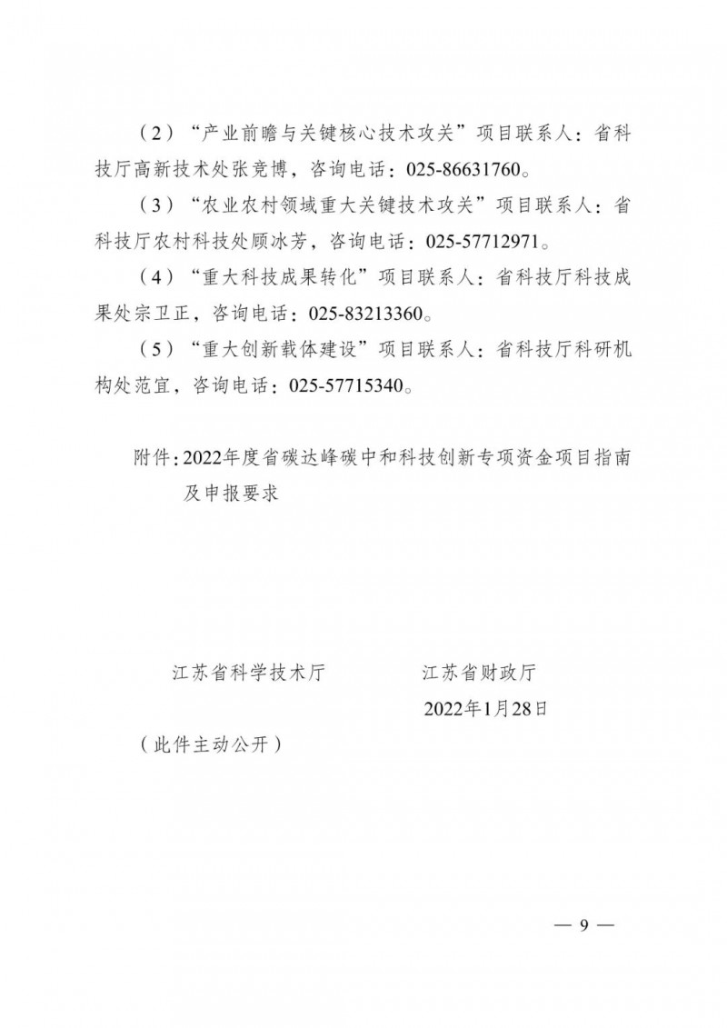 近日,江蘇省科學(xué)技術(shù)廳及財(cái)政廳發(fā)布《2022年度省碳達(dá)峰碳中和科技創(chuàng)新專項(xiàng)資金項(xiàng)目指南》。