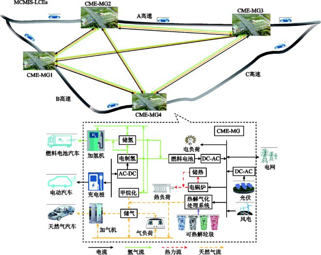 新能源汽車產(chǎn)業(yè)的快速發(fā)展是實(shí)現(xiàn)“碳達(dá)峰,碳中和”行動的重要組成部分。隨著新能源汽車逐步規(guī)?;l(fā)展,我國電能、氫氣、天然氣驅(qū)動汽車保有量預(yù)計(jì)在2035年突破1.5億輛。面對不斷增長的多能源充能需求和碳減排壓力,提出含電、氫和天然氣等多種能源生產(chǎn)、傳輸、轉(zhuǎn)換、存儲、消費(fèi)各環(huán)節(jié)深度耦合,并具有一定垃圾處理能力的充能型微網(wǎng)是解決新能源汽車充能這一涵蓋環(huán)境、交通、能源等多領(lǐng)域協(xié)同問題的有效途徑之一。