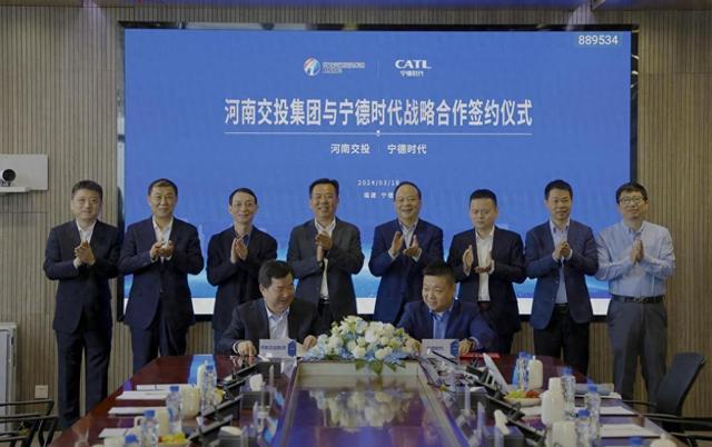 3月18日上午,河南交通投資集團與寧德時代新能源科技股份有限公司在福建省寧德市簽署戰(zhàn)略合作框架協(xié)議,共建綠色交通能源補給生態(tài),推動形成河南交投“高速公路+新能源”發(fā)展新格局。河南交投集團黨委書記、董事長付磊,集團黨委委員、工會主席、副總經理代建偉,省紀委監(jiān)委駐集團紀檢監(jiān)察組組長、黨委委員王保月,黨委委員、副總經理袁凍雷;寧德時代創(chuàng)始人、董事長、CEO曾毓群,監(jiān)事會主席、生態(tài)委員會主席、區(qū)域管理總裁吳映明等見證簽約儀式,交投集團黨委委員、副總經理馬沉重與寧德時代區(qū)域總經理陳凌分別代表雙方簽約。