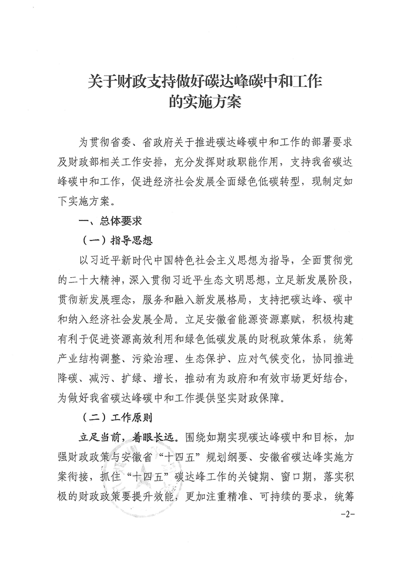 近日,安徽省財政廳印發(fā)《關(guān)于財政支持做好碳達峰碳中和工作的實施方案》的通知。