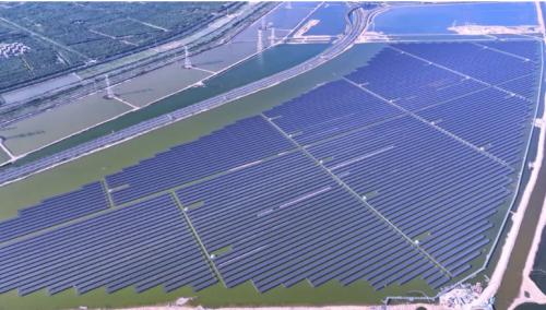 該項(xiàng)目位于天津市濱海新區(qū)長(zhǎng)蘆海晶集團(tuán)鹽場(chǎng)內(nèi),采用鹽光漁互補(bǔ)模式,將傳統(tǒng)養(yǎng)殖、制鹽和新能源跨界融合,實(shí)現(xiàn)“水上光伏發(fā)電、水下養(yǎng)蝦、海水曬鹽”。
