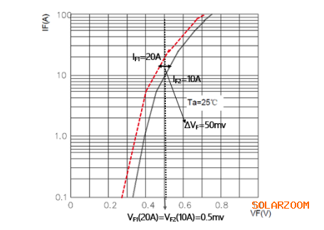 《無法忽視的真相》一文中,作者以二極管正向耐壓曲線來杜撰所謂的并聯(lián)二極管分流特性圖,文中錯(cuò)誤地標(biāo)識(shí)圖表,有意夸大事實(shí)、混淆視聽。比如,該圖中列出VF1(20A)= VF2(10A)=0.5mV,而實(shí)際上曲線中的數(shù)據(jù)點(diǎn)指向了0.5V,兩者相差1000倍,這種數(shù)據(jù)如何讓人信服?而在幾天之后的另外一篇文章《一圖看懂超大組件接線盒的安全風(fēng)險(xiǎn)》中,該文作者又悄然將這部分的內(nèi)容刪除,這是典型的信心缺失。
