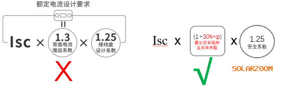 2021年2月,IEC61215/IEC61730:2021已發(fā)布,標(biāo)準(zhǔn)中增加了雙面組件的相關(guān)定義和描述。該標(biāo)準(zhǔn)推薦按照1.25xIsc-BSI 進(jìn)行零部件選型,請(qǐng)注意這里需要考慮雙面組件的雙面系數(shù)φ(目前,普遍的雙面系數(shù)φ約為70%)。根據(jù)歷次標(biāo)準(zhǔn)升級(jí)慣例,考慮到認(rèn)證機(jī)構(gòu)及實(shí)驗(yàn)室設(shè)備升級(jí)、資質(zhì)認(rèn)可,2021版標(biāo)準(zhǔn)的正式執(zhí)行還需數(shù)月至數(shù)年時(shí)間。然而,《無法忽視的真相》一文,生搬硬套錯(cuò)誤的標(biāo)準(zhǔn)并缺乏深度理解,這是完全不了解產(chǎn)品和標(biāo)準(zhǔn)的表現(xiàn)。