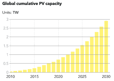 挪威船級(jí)社DNV在其最新的技術(shù)報(bào)告中表示,到2025年,全球太陽能裝機(jī)容量將翻一番,到2030年將翻兩番,達(dá)到3,000吉瓦。