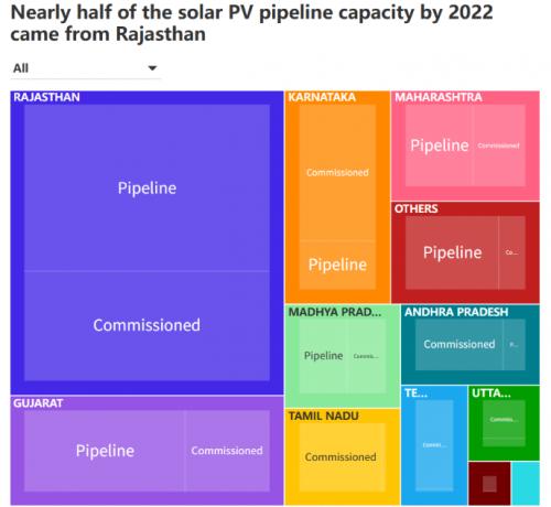 2022年,印度近一半的太陽能光伏容量來自Rajasthan邦