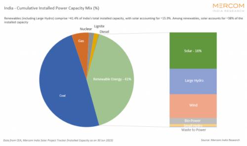截至6月30日,印度安裝的可再生能源發(fā)電設(shè)施(包括大型水電項(xiàng)目)裝機(jī)容量為173.5GW,占總體能源裝機(jī)容量的41.4%,與上一季度的37.9%相比略有增加。