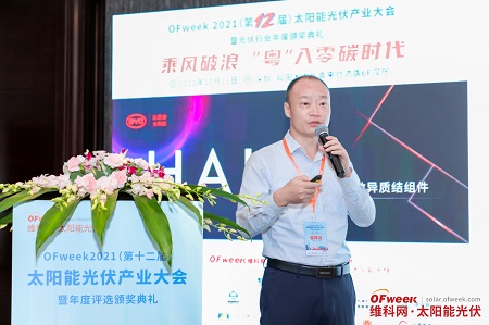 蘇州騰暉光伏技術(shù)有限公司研發(fā)總監(jiān)錢洪強(qiáng)先生,就基于異質(zhì)結(jié)電池方面的問題,發(fā)表了主題為《雙碳目標(biāo)下光伏技術(shù)發(fā)展的趨勢(shì)討論》的精彩演講。