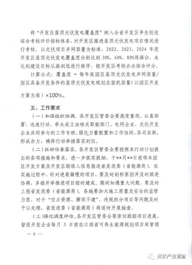 力爭到2022年底,實(shí)現(xiàn)全省各開發(fā)區(qū)具備開發(fā)條件的屋頂光伏發(fā)電覆蓋度達(dá)到30%以上;到2023年底,全省各開發(fā)區(qū)具備開發(fā)條件的屋頂光伏發(fā)電覆蓋度達(dá)到60%以上;到2024年底,全省各開發(fā)區(qū)具備開發(fā)條件的屋頂光伏發(fā)電覆蓋度達(dá)到80%以上。