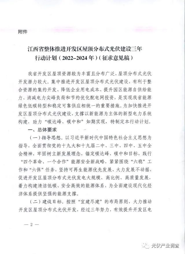 近日,江西省發(fā)改委印發(fā)《江西省整體推進(jìn)開發(fā)區(qū)屋頂分布式光伏建設(shè)三年行動(dòng)計(jì)劃(2022-2024年)(征求意見稿)》。明確提出建設(shè)目標(biāo):按照“宜建盡建”的布局原則,大力推動(dòng)開發(fā)區(qū)屋頂分布式光伏開發(fā),經(jīng)過三年努力,有效提升開發(fā)區(qū)電力系統(tǒng)安全保障能力。