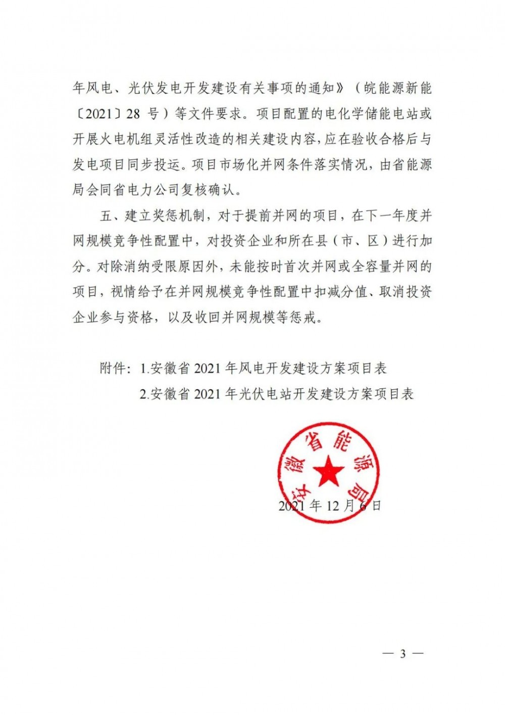 此外,安徽省要求各投資企業(yè)要切實加快項目建設進度,除并網(wǎng)消納受限原因外,光伏電站項目應于2022年底前首次并網(wǎng),2023年6月底前全容量并網(wǎng);風電項目應于2023年底前首次并網(wǎng),2024年6月底前全容量并網(wǎng)。