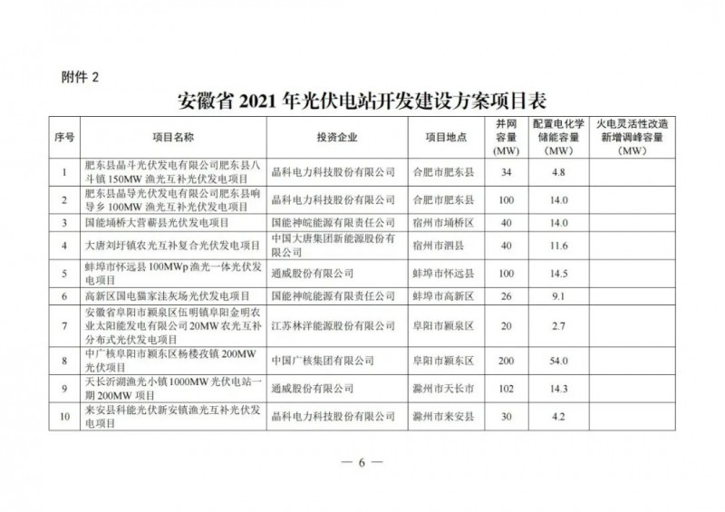 安徽能源局發(fā)布6GW風(fēng)、光項(xiàng)目優(yōu)選名單