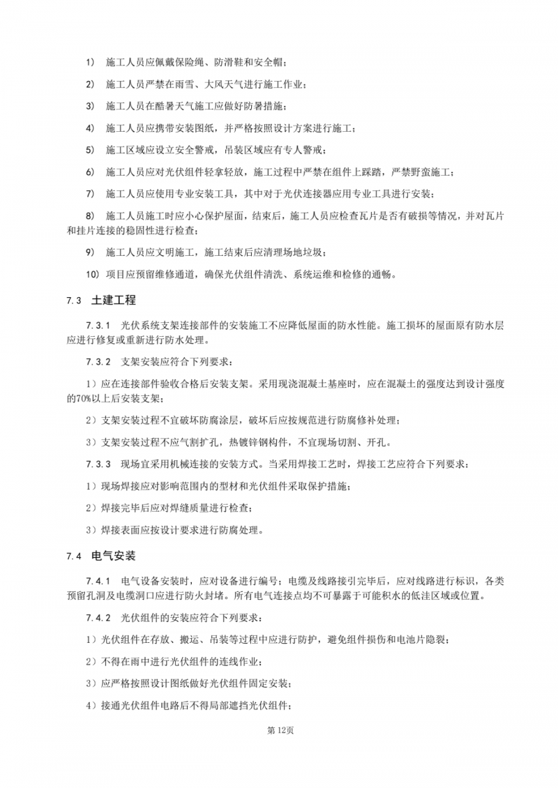 分布式光伏設(shè)計(jì)、安裝和運(yùn)維企業(yè)應(yīng)配備光伏發(fā)電領(lǐng)域的專職技術(shù)人員,應(yīng)具備與服務(wù)內(nèi)容相匹配的技術(shù)能力,鼓勵(lì)從業(yè)人員積極提升專業(yè)能力,主動(dòng)參加由行業(yè)組織或?qū)I(yè)機(jī)構(gòu)組織開展的針對(duì)性系列技術(shù)培訓(xùn)并取得培訓(xùn)合格證書。
