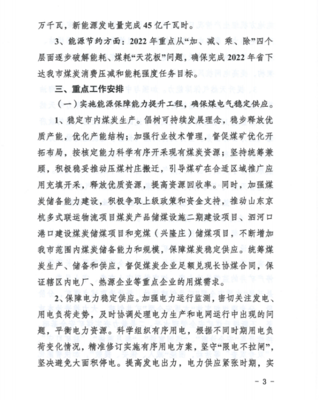 近日,濟(jì)寧市能源局發(fā)布《2022年全市能源工作要點(diǎn)》,提出2022年主要目標(biāo):