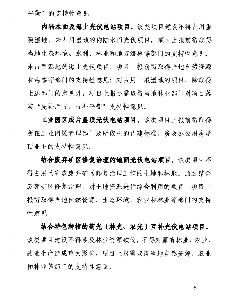 1)近海養(yǎng)殖漁光互補、2)內陸水面及海上光伏、3)工業(yè)園區(qū)成片屋頂光伏、4)結合廢棄礦區(qū)修復治理的地面光伏、5)結合特色種植的藥光(林光、農光)互補。