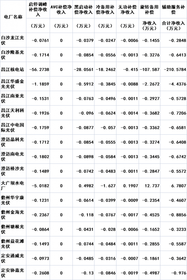 2.2022年6月海南統(tǒng)調(diào)電廠輔助服務補償結果
