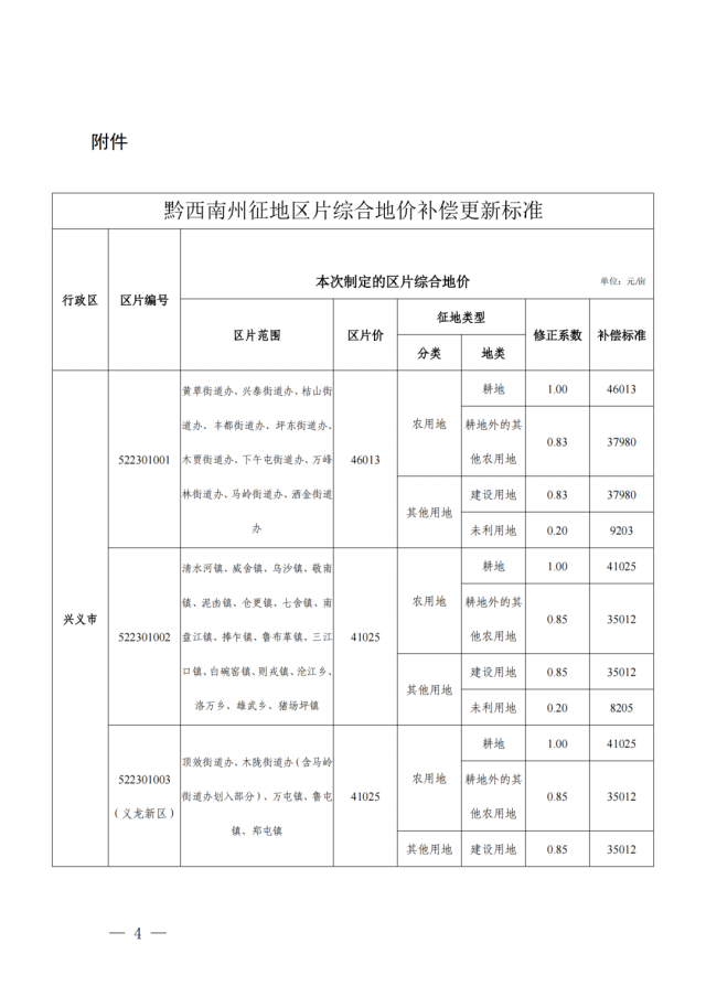 根據(jù)此前發(fā)布的《州人民政府關于公布實施黔西南州征地區(qū)片綜合地價補償更新標準的通知》(黔西南府函〔2020〕69號)補償標準,安龍縣普坪鎮(zhèn)區(qū)片綜合地價為38031元/畝,其中農用地耕地補償標準為38031元/畝,耕地外的其他農用地補償標準為28032元/畝。