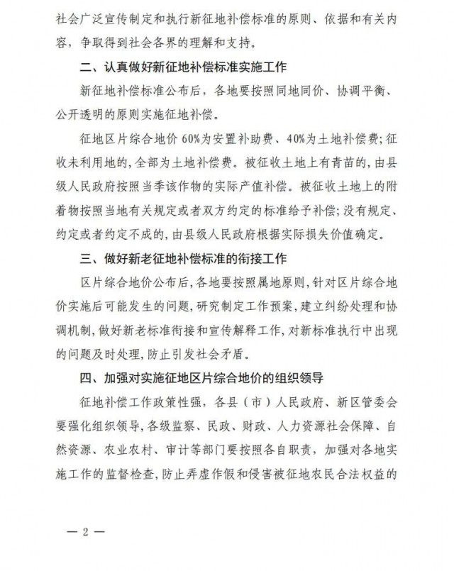 此外,根據(jù)黔西南州征地區(qū)片綜合地價補償更新標準,各地要按照同地同價、協(xié)調平衡、 公開透明的原則實施征地補償。征地區(qū)片綜合地價60%為安置補助費、40%為土地補償費;征 收未利用地的,全部為土地補償費。被征收土地上有青苗的,由縣級人民政府按照當季該作物的實際產值補償。被征收土地上的附著物按照當?shù)赜嘘P規(guī)定或者雙方約定的標準給予補償;沒有規(guī)定、 約定或者約定不成的,由縣級人民政府根據(jù)實際損失價值確定。