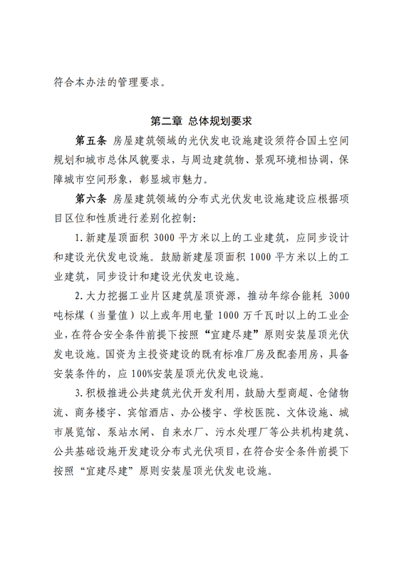 1.新建屋頂面積3000平方米以上的工業(yè)建筑,應(yīng)同步設(shè)計(jì)和建設(shè)光伏發(fā)電設(shè)施。鼓勵(lì)新建屋頂面積1000平方米以上的工業(yè)建筑,同步設(shè)計(jì)和建設(shè)光伏發(fā)電設(shè)施。