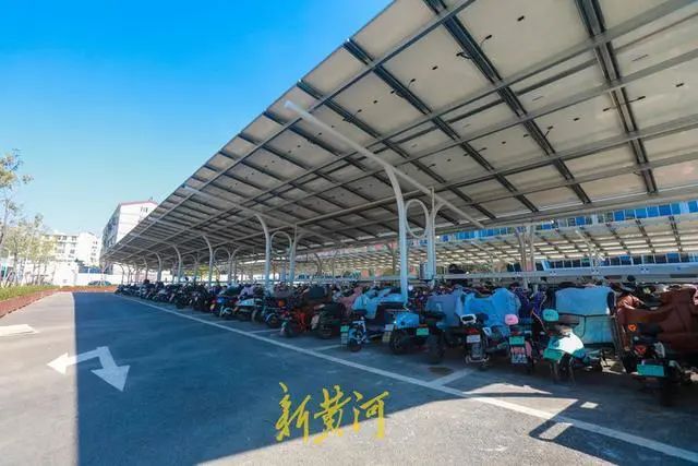 山東大學(xué)國家大學(xué)科技園停車場的車棚采用光伏一體化結(jié)構(gòu),光伏面板架設(shè)于停車位上方的鋼桁架上,以光伏電池板代替車棚頂面,既能避免車輛日曬雨淋,所發(fā)出的電力又能為園區(qū)、車棚提供照明,起到一舉多得的效果。車棚內(nèi)安裝了充電樁、儲能等配套設(shè)施,可以為電動汽車、電動自行車充電,實現(xiàn)了光儲充一體化,綠色低碳場景再添新貌,進一步邁向智慧零碳園區(qū)。