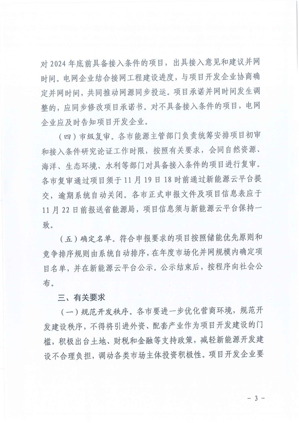文件明確,規(guī)范開發(fā)秩序。各市要進(jìn)一步優(yōu)化營商環(huán)境,規(guī)范開發(fā)建設(shè)秩序,不得將引進(jìn)外資、配套產(chǎn)業(yè)作為項(xiàng)目開發(fā)建設(shè)的門檻,積極出臺(tái)土地、財(cái)稅和金融等支持政策,減輕新能源開發(fā)建設(shè)不合理負(fù)擔(dān),調(diào)動(dòng)各類市場主體投資積極性。項(xiàng)目開發(fā)企業(yè)要堅(jiān)持實(shí)事求是,充分考慮項(xiàng)目經(jīng)濟(jì)性和可行性,科學(xué)確定配置儲(chǔ)能容量,杜絕盲目競爭、惡意競爭。