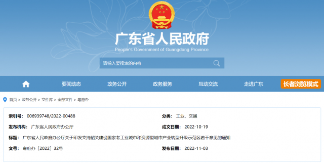 日前,廣東省人民政府辦公廳關(guān)于印發(fā)支持韶關(guān)建設(shè)國家老工業(yè)城市和資源型城市產(chǎn)業(yè)轉(zhuǎn)型升級示范區(qū)若干意見的通知,通知提到,大力發(fā)展節(jié)能環(huán)保產(chǎn)業(yè)。支持韶關(guān)在土壤污染修復(fù)、水污染治理、大氣污染防治、工業(yè)節(jié)能減排、固廢資源化利用、裝備制造等領(lǐng)域,大力引進(jìn)和應(yīng)用先進(jìn)技術(shù),推動(dòng)一批優(yōu)勢企業(yè)與韶關(guān)合作共建專業(yè)化生態(tài)園區(qū)和環(huán)保裝備產(chǎn)業(yè)基地。支持韶關(guān)在符合國家用地政策的前提下開展光伏、風(fēng)電等新能源項(xiàng)目建設(shè),謀劃建設(shè)新能源產(chǎn)業(yè)園。支持韶關(guān)開展城燃企業(yè)綜合試點(diǎn)改革。支持推進(jìn)綠色制造和清潔生產(chǎn),逐步實(shí)現(xiàn)產(chǎn)品全生命周期綠色管理。