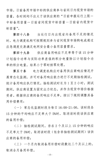 1月13日,山西能源監(jiān)管辦發(fā)布關于征求《山西正備用輔助服務市場交易實施細則(征求意見稿)》意見的函,文件指出,備用服務供應商:執(zhí)行備用市場交易結果,能夠響應調度指令,調整發(fā)電出力(或用電負荷)提供備用服務的市場主體,包括參與現(xiàn)貨市場的燃煤機組和燃氣機組,省調直調的新型儲能電站,虛擬電廠、可控負荷,以及具備調節(jié)能力的風電場、光伏電站等。新能源企業(yè)和電力用戶開展技術改造,具備穩(wěn)定提供備用輔助服務的條件后,需通過相關性能測試。
