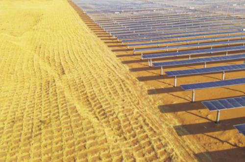 與一般的新能源電站不同,在沙漠投資新能源項(xiàng)目還必須解決荒漠治理的難題。所以這個(gè)項(xiàng)目建設(shè)之處,國(guó)家能源集團(tuán)龍?jiān)措娏瓦\(yùn)用“林光互補(bǔ)”“農(nóng)光互補(bǔ)”技術(shù),采取“林草結(jié)合”模式,實(shí)現(xiàn)“板上發(fā)電、板間種植、板下修復(fù)”新格局,形成光、林、草相結(jié)合的林沙產(chǎn)業(yè)新模式。
