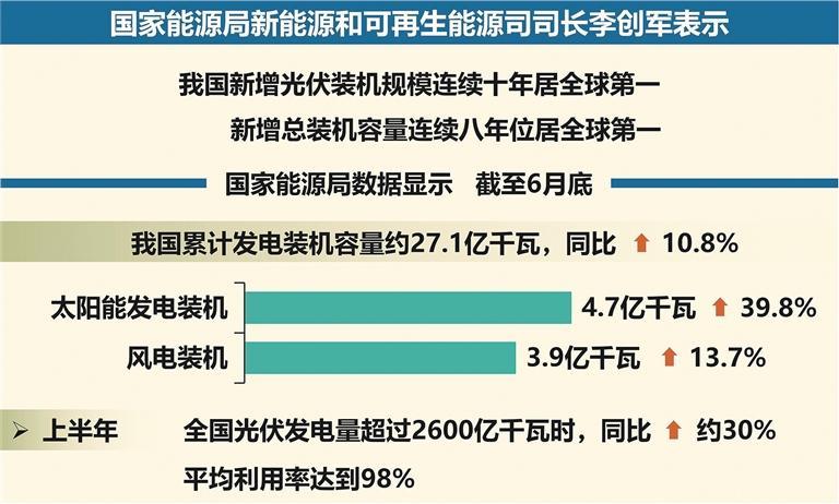 上半年全國(guó)光伏發(fā)電量超過2600億千瓦時(shí)