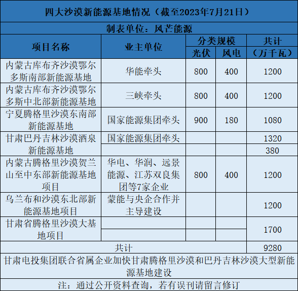 四大沙漠風(fēng)光大基地項(xiàng)目詳情見(jiàn)下:
