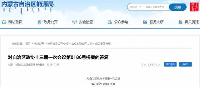 7月27日,內(nèi)蒙古自治區(qū)能源局對(duì)自治區(qū)政協(xié)十三屆一次會(huì)議第0416號(hào)提案和自治區(qū)政協(xié)十三屆一次會(huì)議第0218號(hào)提案給出答復(fù)。