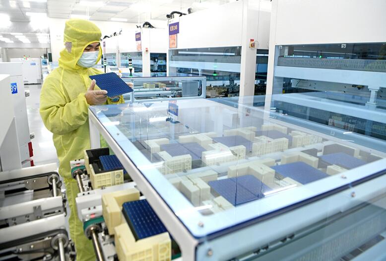 N型TOPCon電池產(chǎn)品生產(chǎn)。陳彬攝