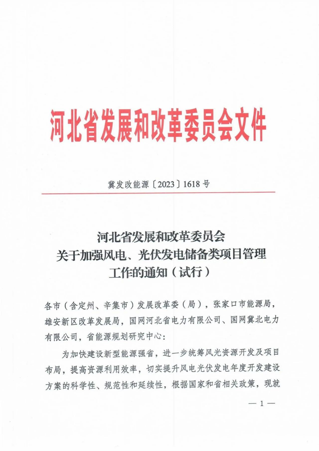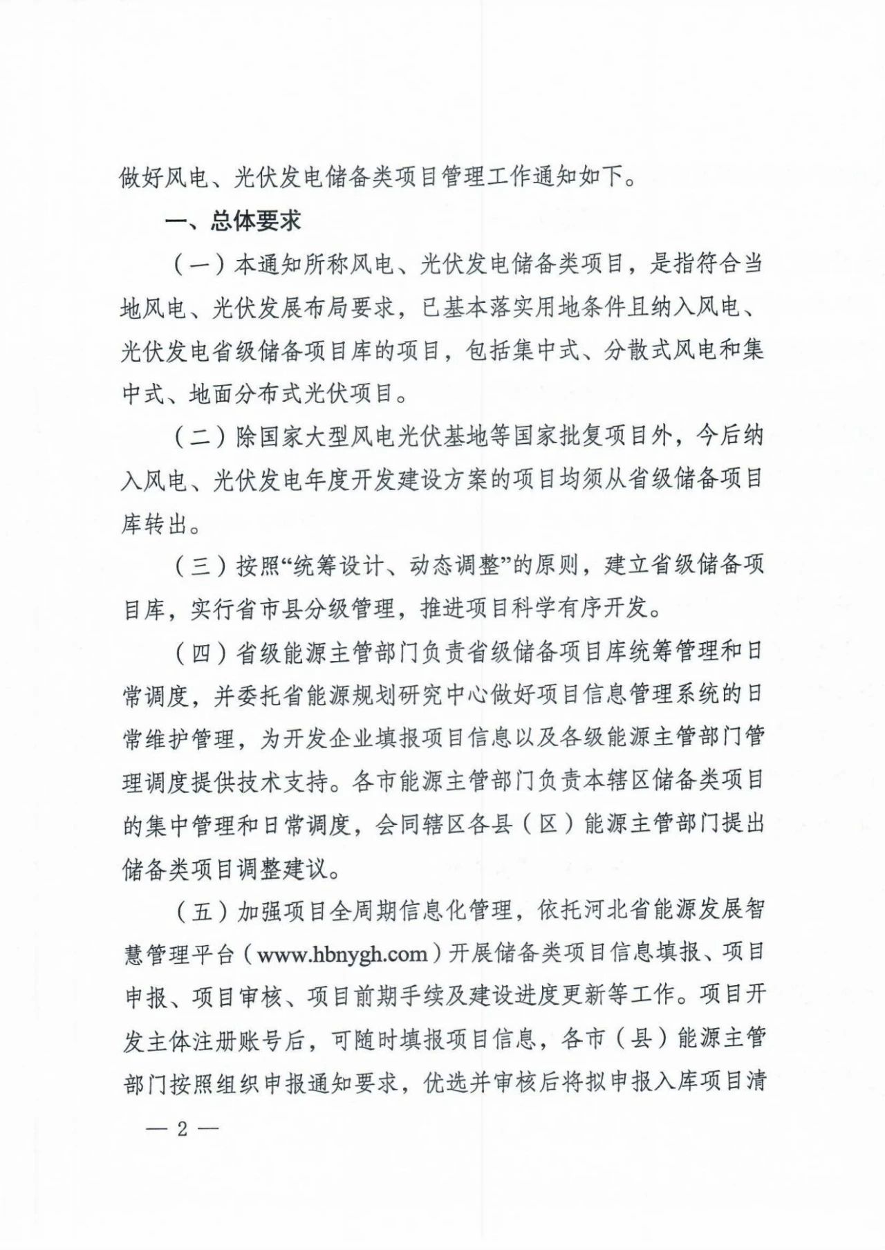 根據(jù)文件,通知涉及的儲備項目包括集中式、分散式風(fēng)電和集中式、地面分布式光伏,要求已基本落實用地條件且納入省級儲備庫。除國家批復(fù)的風(fēng)光基地外,今后河北省所有納入年度開發(fā)方案的項目均需從省級儲備庫轉(zhuǎn)出。