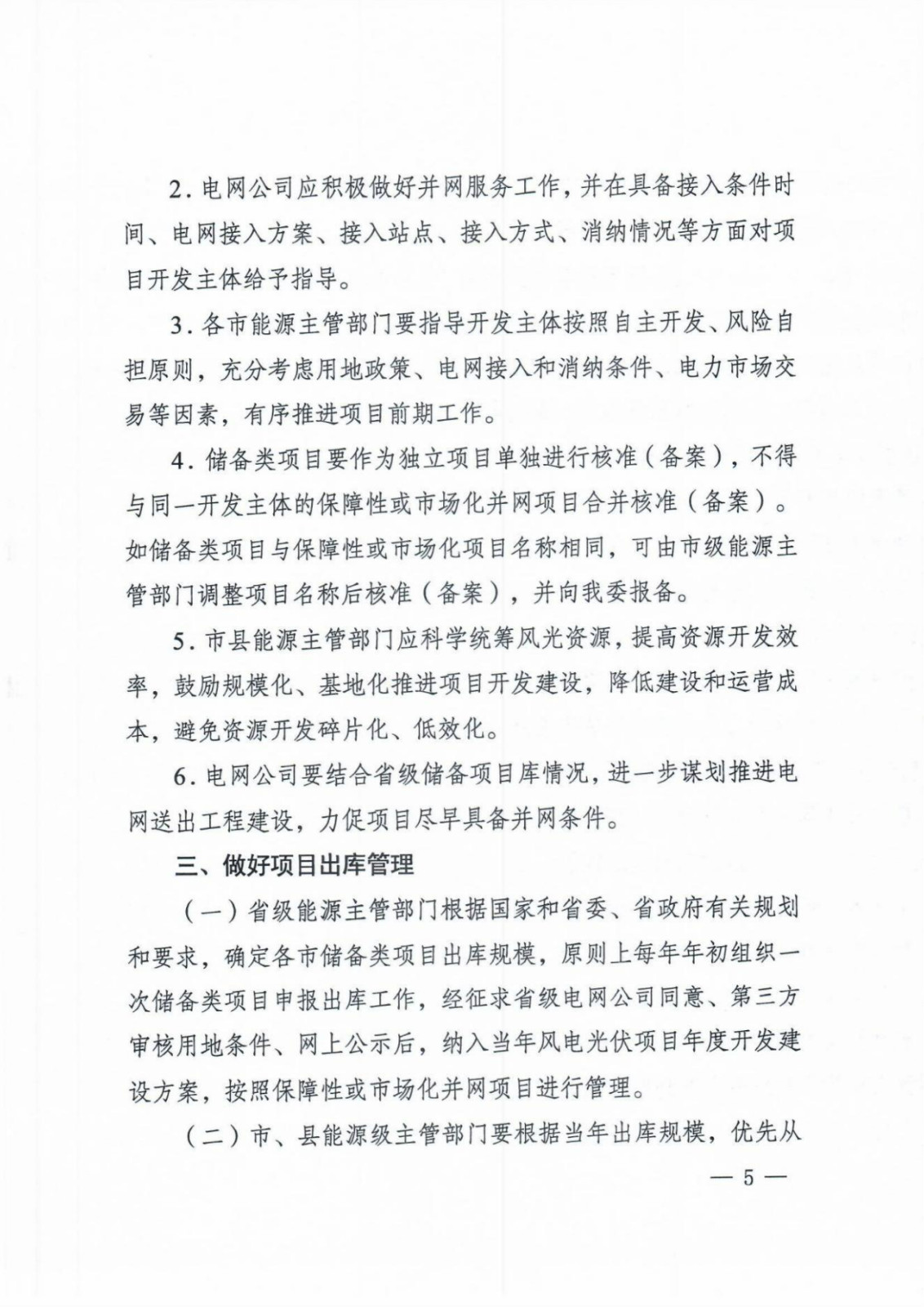 在入庫方面,由省級能源主管部門根據(jù)全省新能源發(fā)展需求,結(jié)合各地市風(fēng)光資源以及存量項目建設(shè)情況、電網(wǎng)規(guī)劃等每季度開展一次新項目入庫,在滿足第三方審核用地條件、征求電網(wǎng)公司意見后經(jīng)各市申報列入儲備庫。