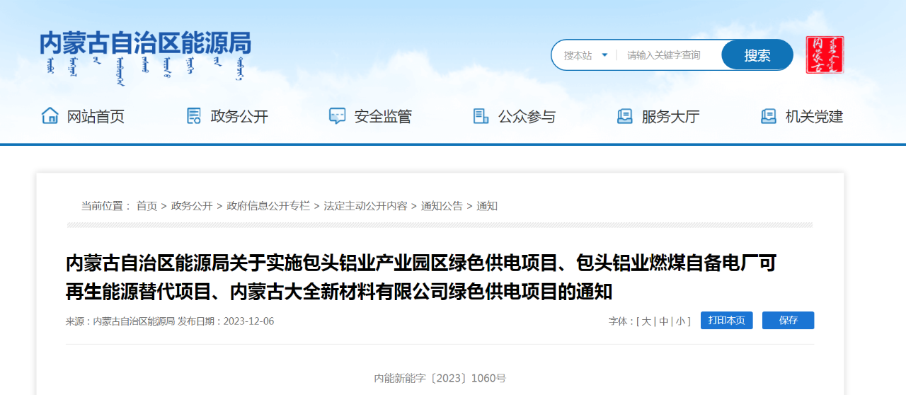 日前,內(nèi)蒙古自治區(qū)能源局網(wǎng)站發(fā)布“內(nèi)蒙古自治區(qū)能源局關(guān)于實(shí)施包頭鋁業(yè)產(chǎn)業(yè)園區(qū)綠色供電項(xiàng)目、包頭鋁業(yè)燃煤自備電廠可再生能源替代項(xiàng)目、內(nèi)蒙古大全新材料有限公司綠色供電項(xiàng)目的通知”(內(nèi)能新能字〔2023〕1060號),根據(jù)文件,自治區(qū)能源局組織評估單位和專家在《包頭市新能源新場景應(yīng)用方案》的基礎(chǔ)上,對包頭市申報的市場化新能源項(xiàng)目子方案進(jìn)行了評估。