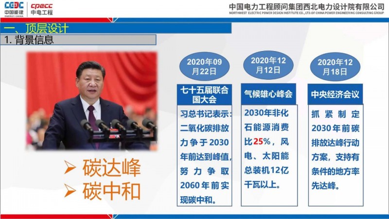 會上,中國能建西北電力設(shè)計院新能源與市政工程分院副設(shè)計總工程師李娜做 碳達峰碳中和背景下“推進一體化”項目開發(fā)與設(shè)計思考 演講,主要介紹了: