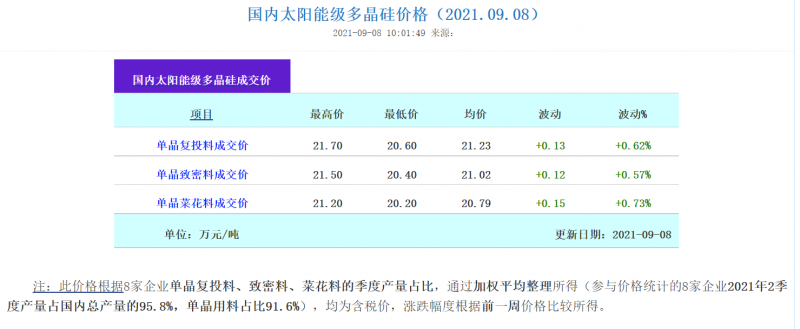 9月8日,硅業(yè)分會發(fā)布多晶硅最新價格信息。