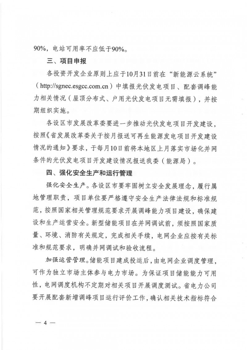 此外,文件要求各投資開發(fā)企業(yè)原則上應(yīng)于10月31日前在“新能源云系統(tǒng)”中填報光伏發(fā)電項目、配套調(diào)峰能力相關(guān)情況。2021年落實的市場化項目原則上應(yīng)于2023年6月底建成并網(wǎng);配套調(diào)峰能力原則上應(yīng)為2021年1月1日以后投產(chǎn)的項目,應(yīng)與光伏發(fā)電項目同步建成、同步并網(wǎng)。